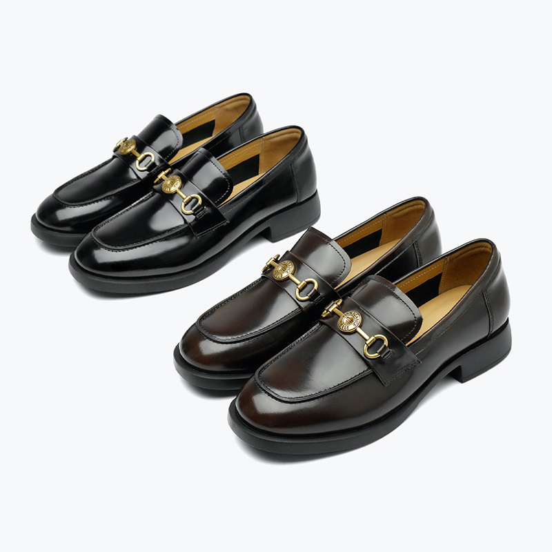 百丽复古英伦风乐福鞋女鞋子春季新款真皮黑色平底单鞋A5Y1DAA4
