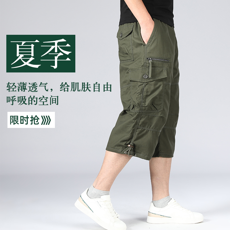 迷彩工装短裤男7分夏季纯棉宽松男士休闲七分裤加肥加大码潮胖子