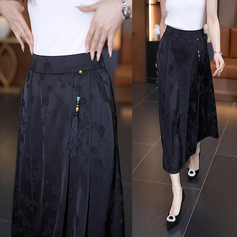 高档新中式提花a字半身裙女春秋新款高腰国风长裙复古显瘦马面裙