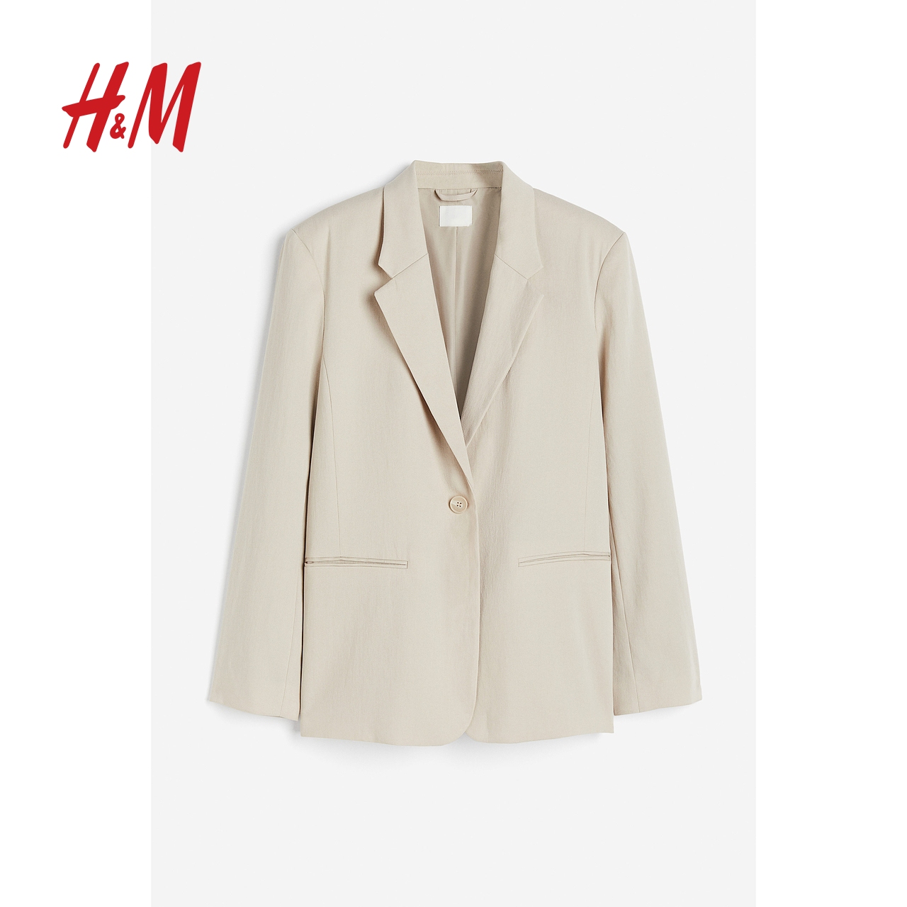 HM女装西装秋季大廓形休闲单排扣长袖西服外套1217451