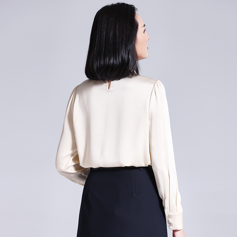 璐丝百丽时尚立领雪纺衬衫女长袖2025春装气质职业泡泡袖雪纺衫