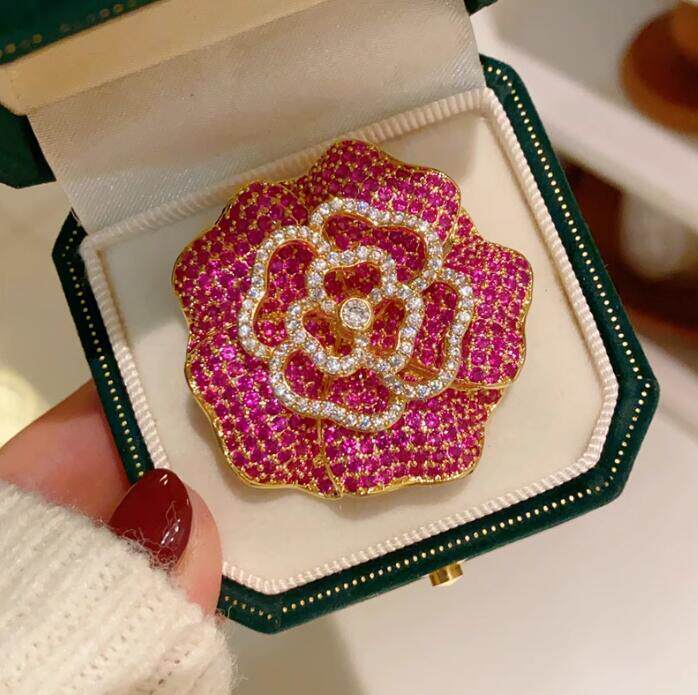 奢华山茶花胸针高档气质精致花朵别针时尚西装礼服百搭配饰礼物女