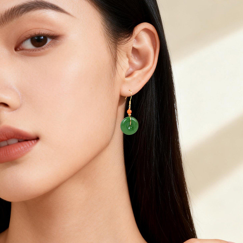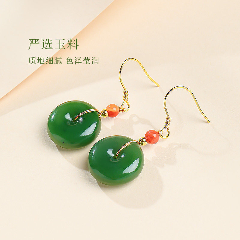 印象眸和田玉碧玉耳饰女款平安扣耳坠国风新中式生日礼物送女朋友