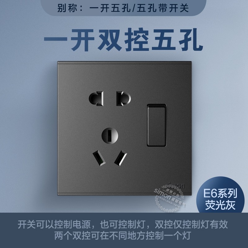 西蒙E6系列斜五孔二三插 错位大间距五孔一开单控/双控86暗装面板