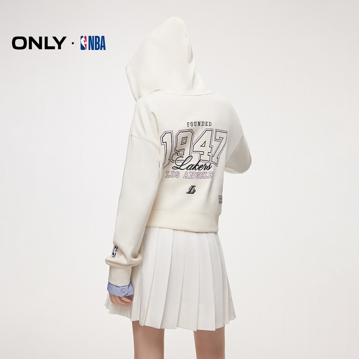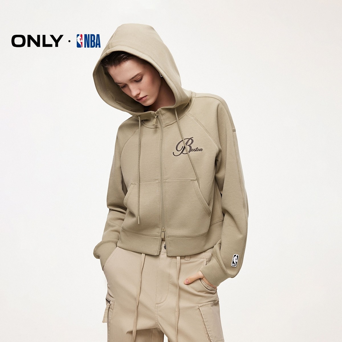 【NBA联名】ONLY2025冬季新款短款双向拉链连帽插肩袖开衫卫衣女