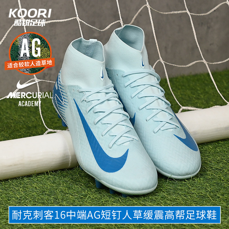 酷锐足球耐克刺客16中端AG短钉人草缓震高帮足球鞋男FQ8329-400