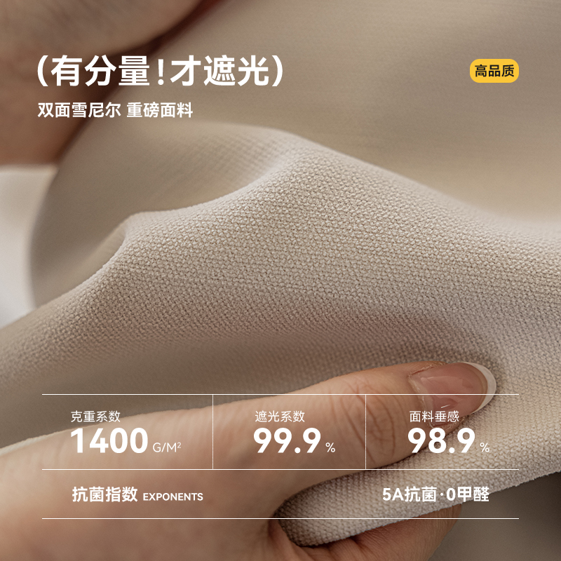 双面雪尼尔轻奢奶油色全遮光电动窗帘客厅卧室加厚高级感成品套装