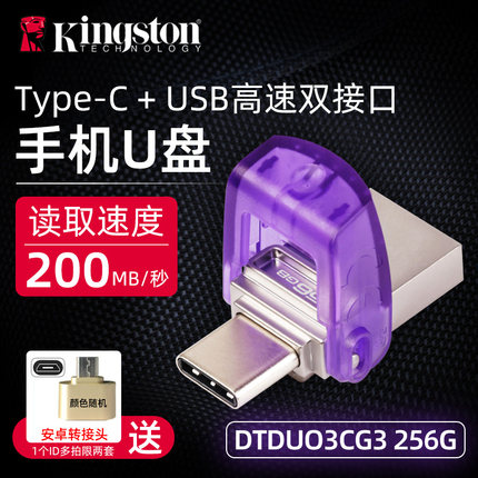 金士顿DTDUO3CG3 256Ggb高速优盘安卓Type-C手机电脑两用U盘