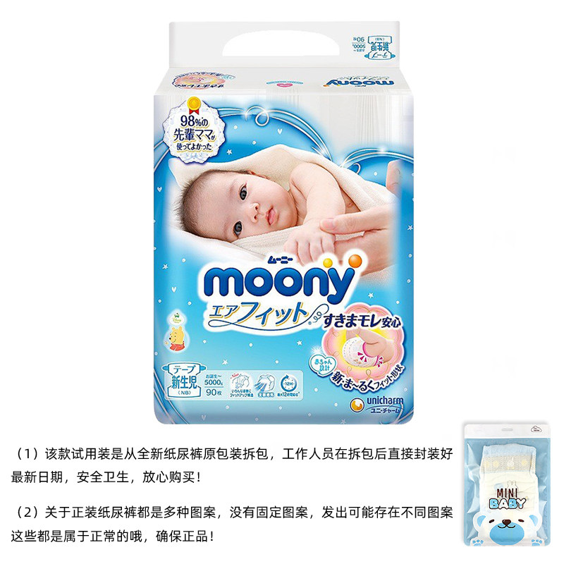 尤妮佳moony婴儿纸尿裤试用装NBSML新生婴儿宝宝柔软尿不湿体验装