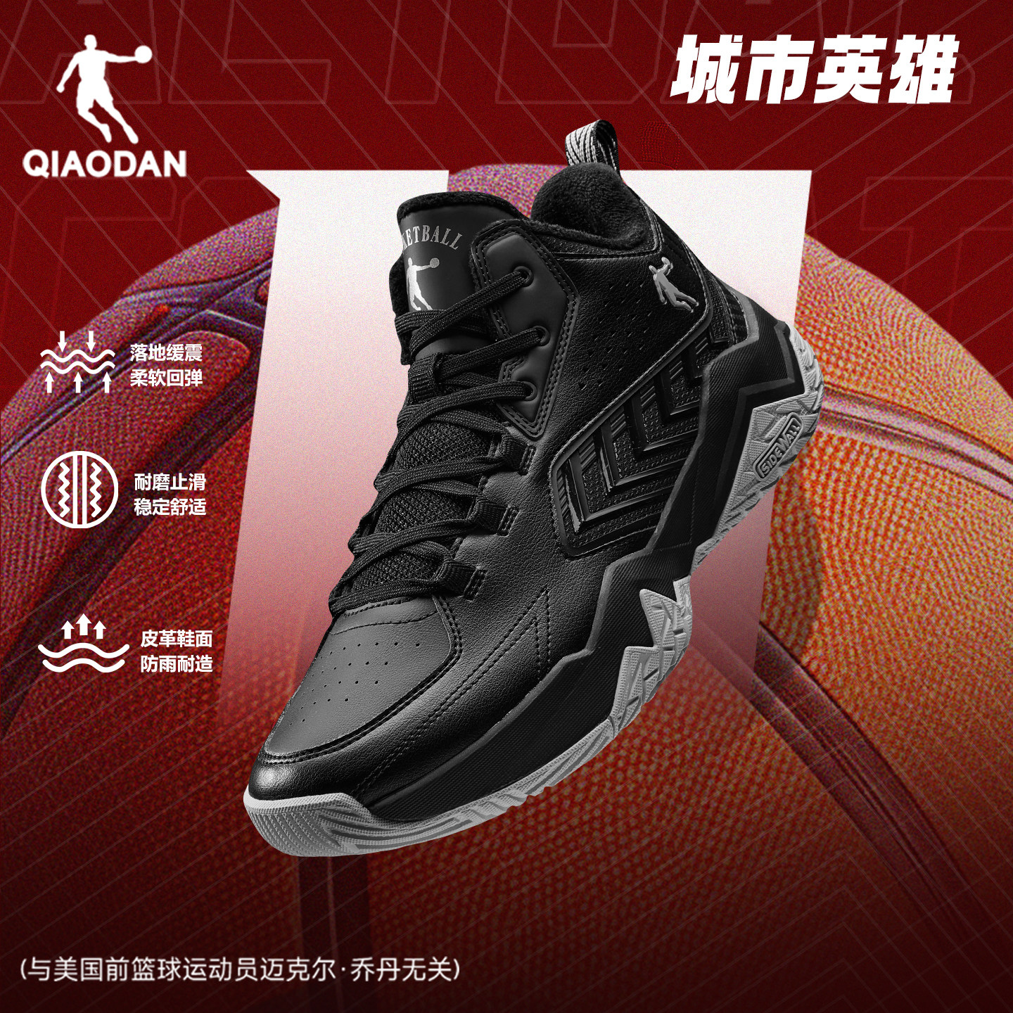 乔丹城市英雄加绒保暖篮球鞋男新款高帮皮面棉鞋防滑防水运动鞋男