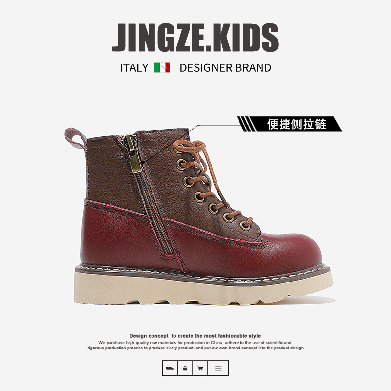 头层牛皮女童马丁靴儿童短靴子