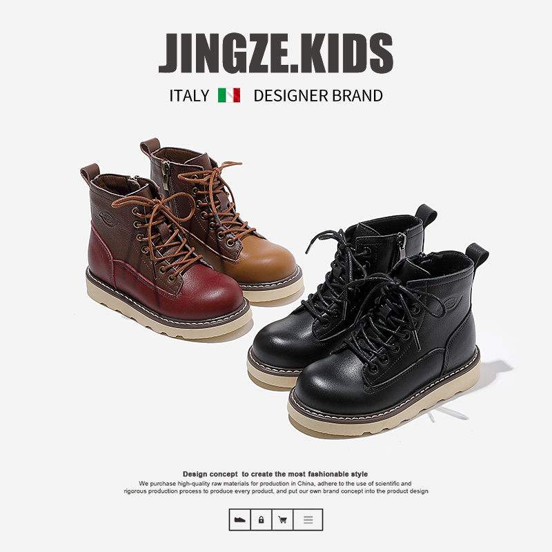 静泽童鞋女童马丁靴头层牛皮2025新款时装靴儿童靴子真皮男童短靴