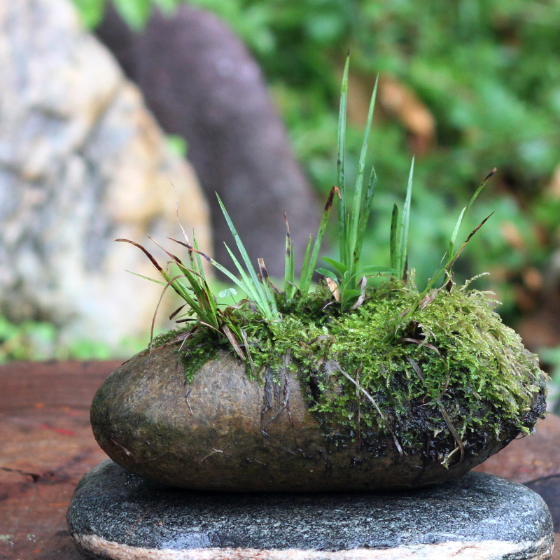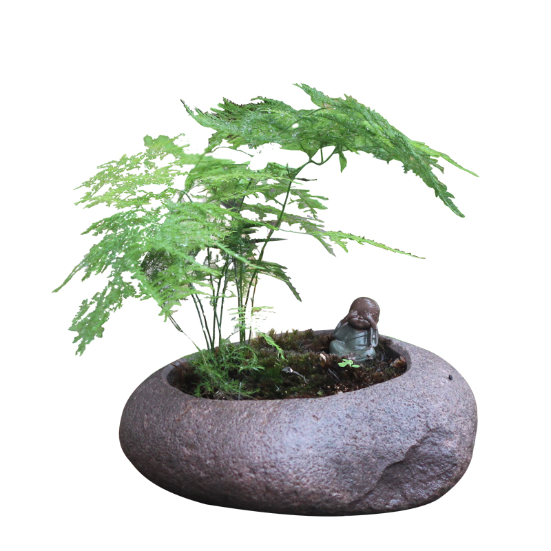 石头花器鹅卵石创意花盆菖蒲铜钱草盆禅意盆景天然原石水培植物
