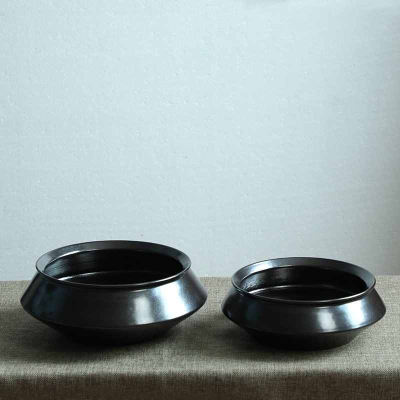 黑色复古陶瓷小花瓶禅意花器摆件干花花插餐桌办公桌软装饰品