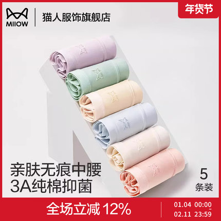 猫人内裤女士抑菌纯棉无痕大码中腰收腹透气全棉档三角裤2025新款