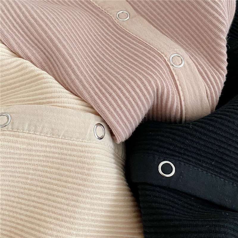 男女宝宝春秋装弹性坑条长袖开衫包脚连体裤两件套装婴儿大屁屁裤