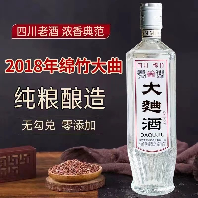 四川绵竹2018年大曲酒整箱纯粮食老酒52度浓香型瓶装白酒高粱酒业