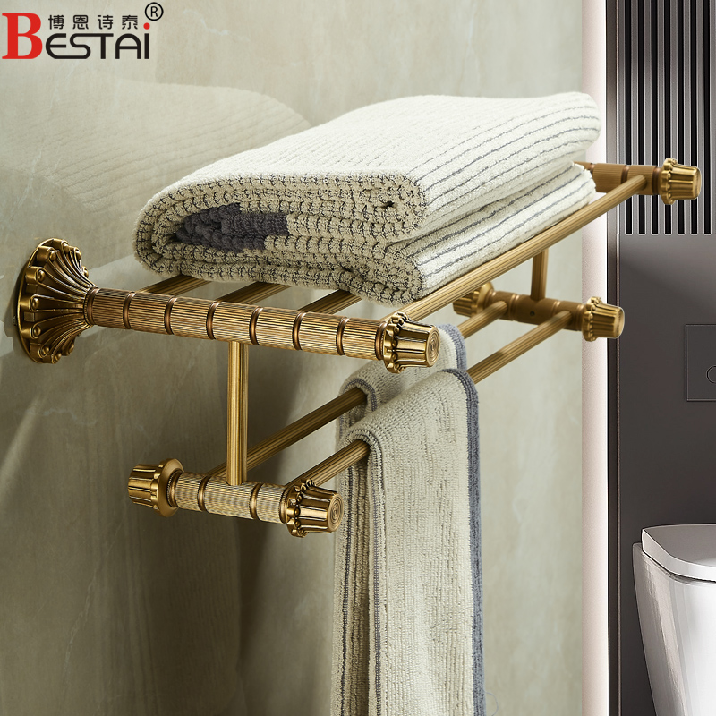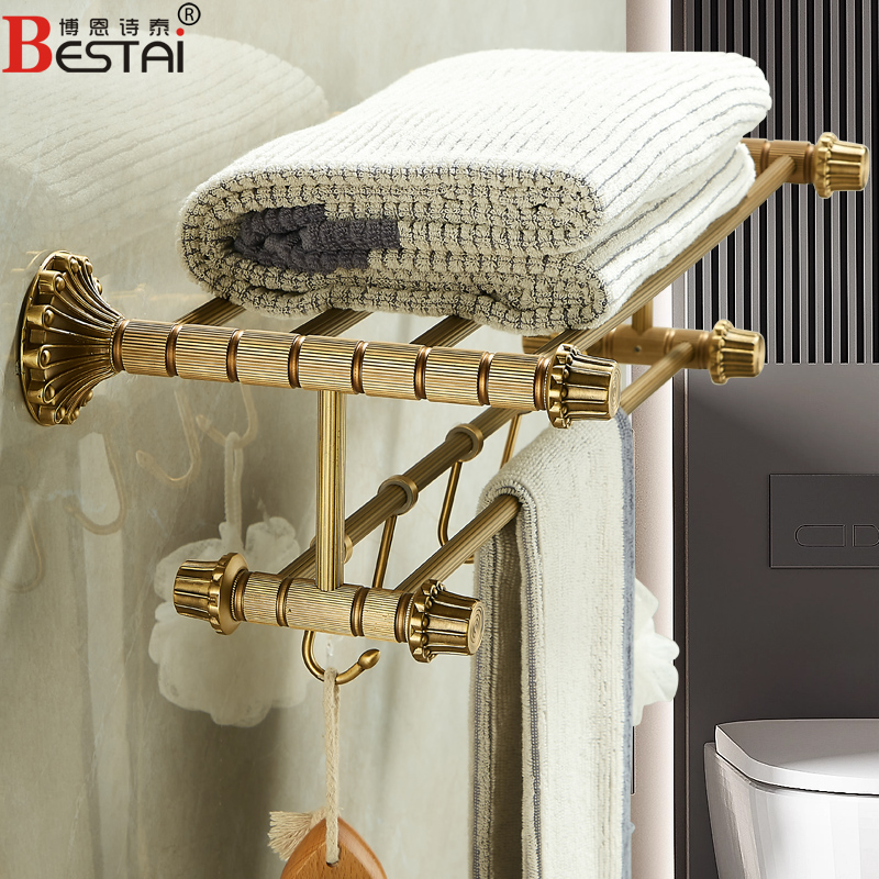 高端仿古毛巾架全铜免打孔卫浴五金挂件套装浴巾架轻奢浴室置物架
