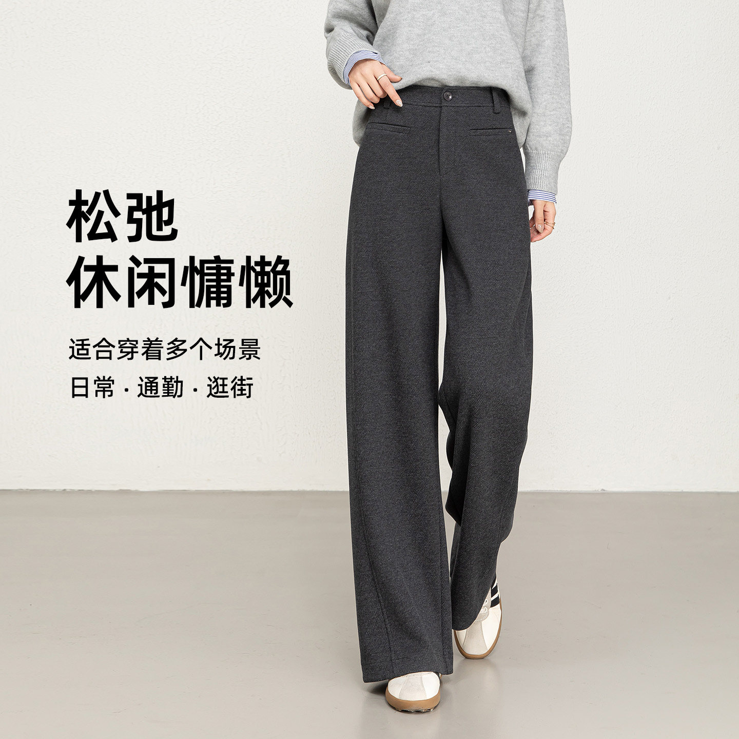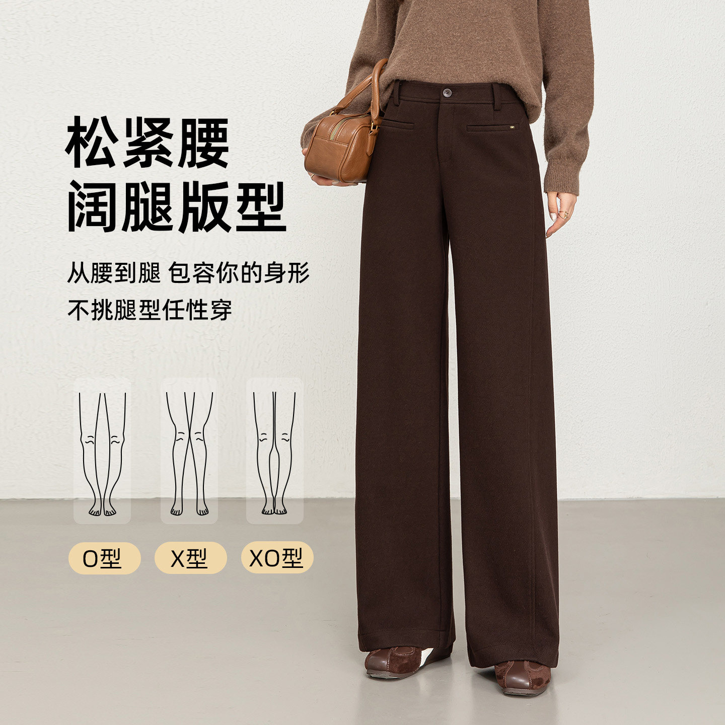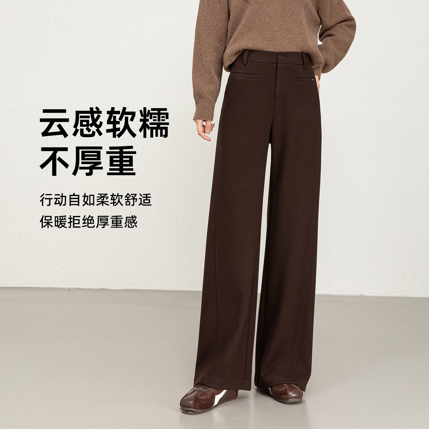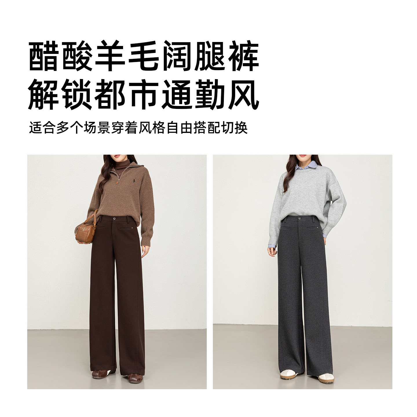 韩氏伊人醋酸羊毛窄版阔腿裤女2025年冬季加绒高腰显瘦休闲直筒裤