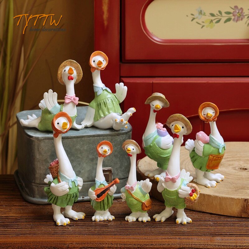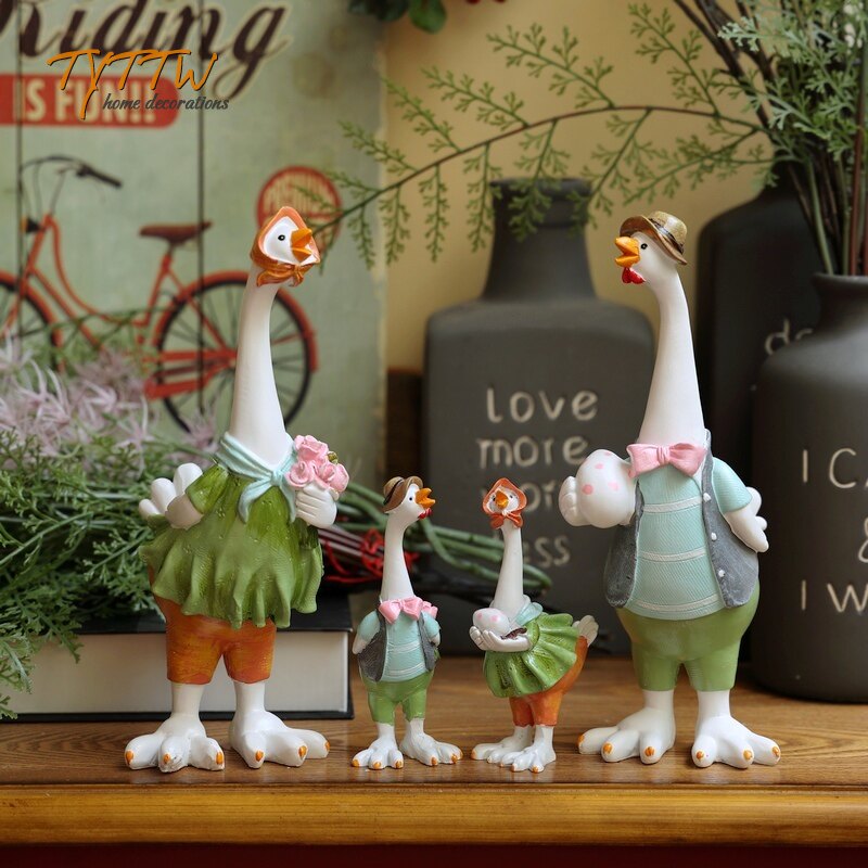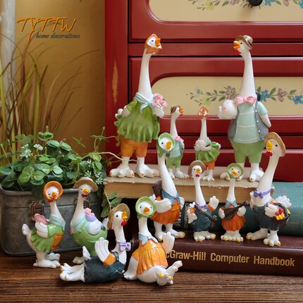 可爱的乡村田园一家四口鸡鸭鹅情侣动物摆件书房儿童房家居装饰