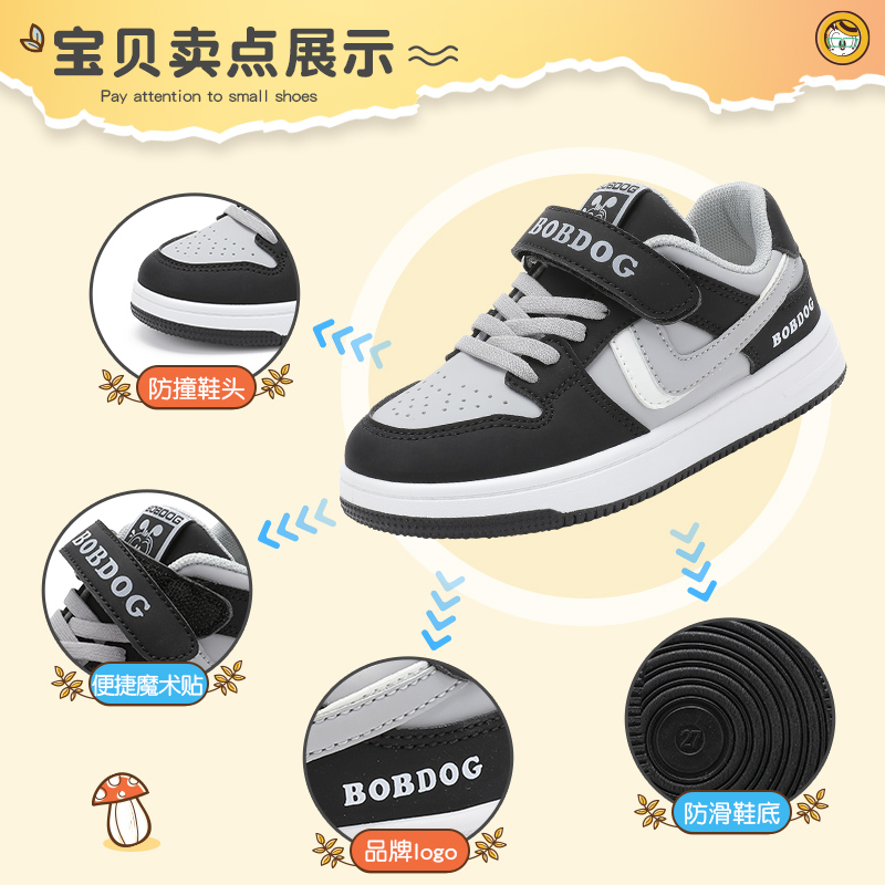 巴布豆童鞋男童鞋子2023新款春秋款儿童百搭低帮板鞋小童运动鞋女