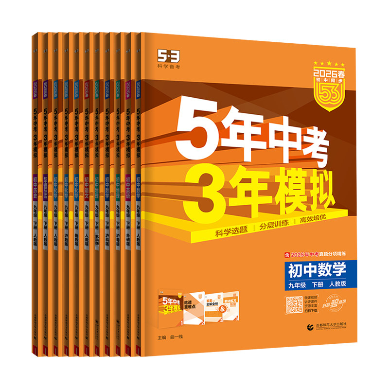 2026春五年中考三年模拟九年级数学上下全一册语文英语物理化学政治历史译林人教苏科版5年中考3年模拟初三苏教53同步练习册江苏版