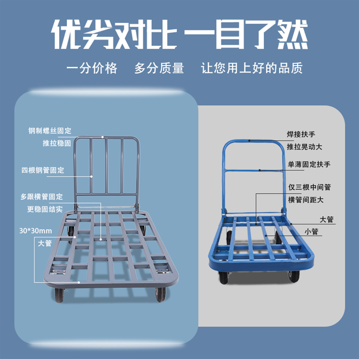 手推车搬运车平板车重型折叠大轮子工地农用行走手拉车拉货推车