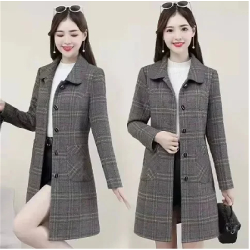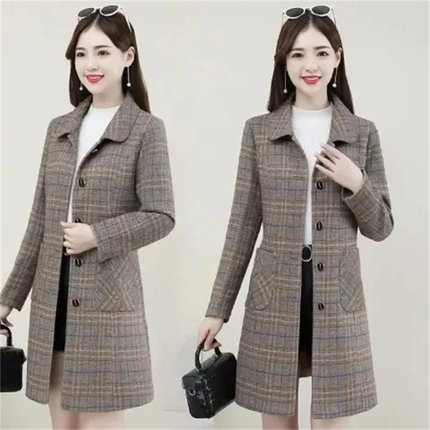 今年流行大码格子毛呢风衣大衣女中长款春装2025新款气质妈妈外套