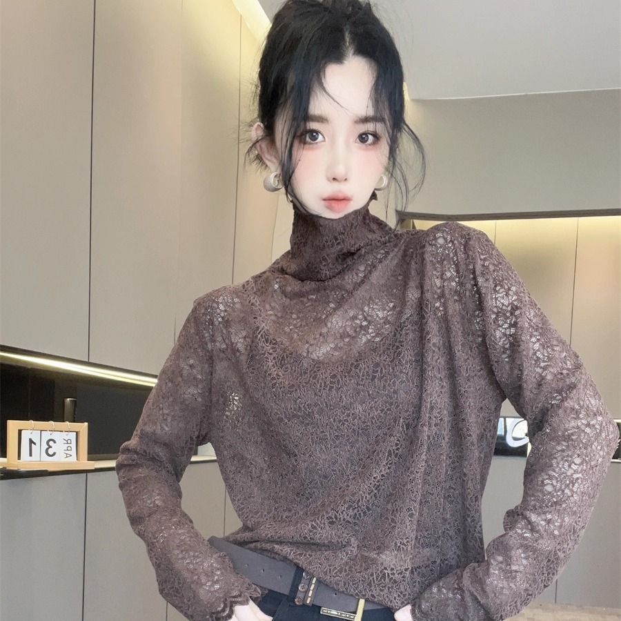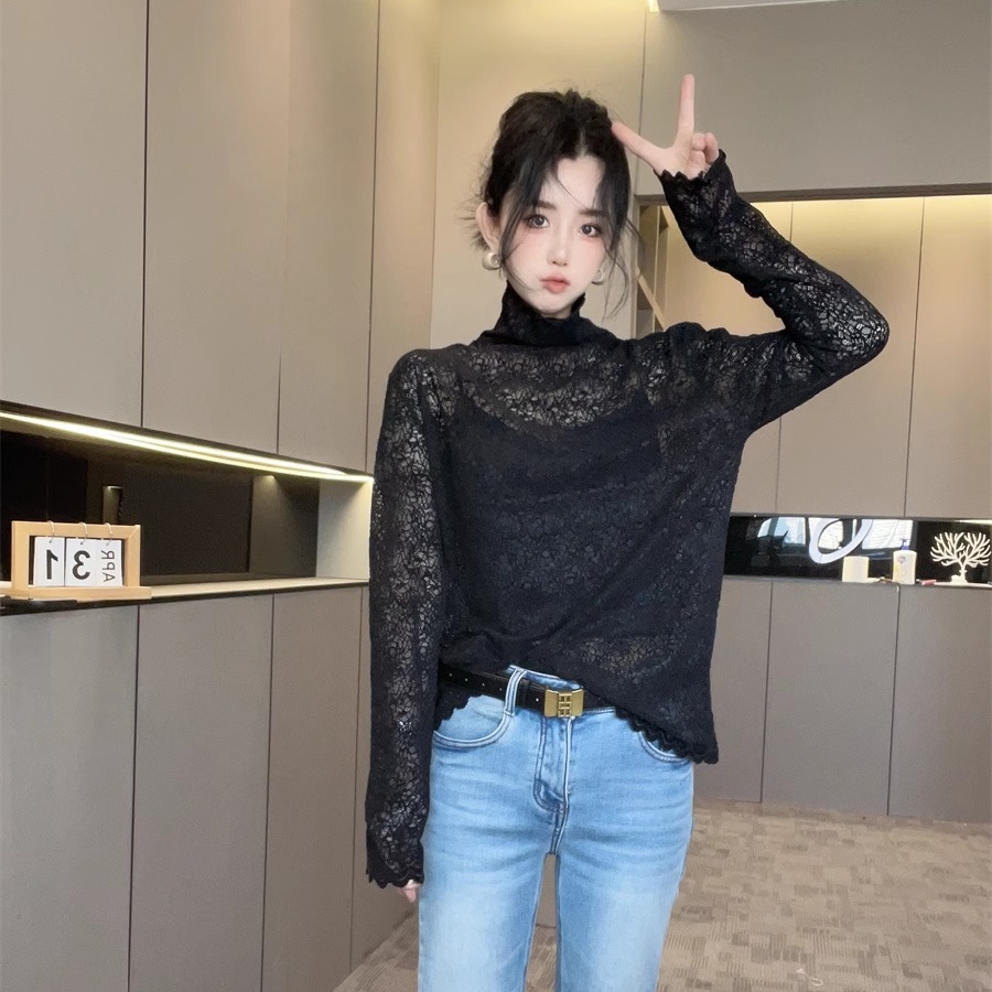 高领蕾丝衫女2025新款秋冬长袖打底衫洋气上衣时髦百搭小衫欧洲站
