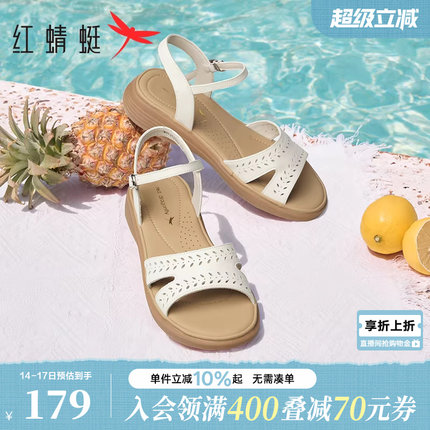 红蜻蜓舒适软底真皮妈妈凉鞋