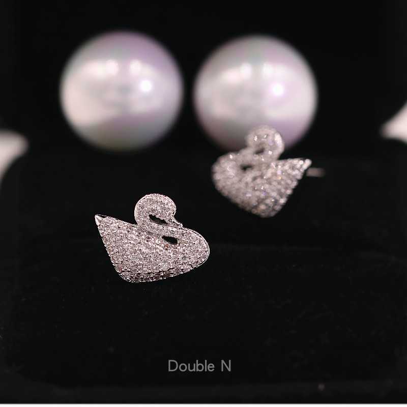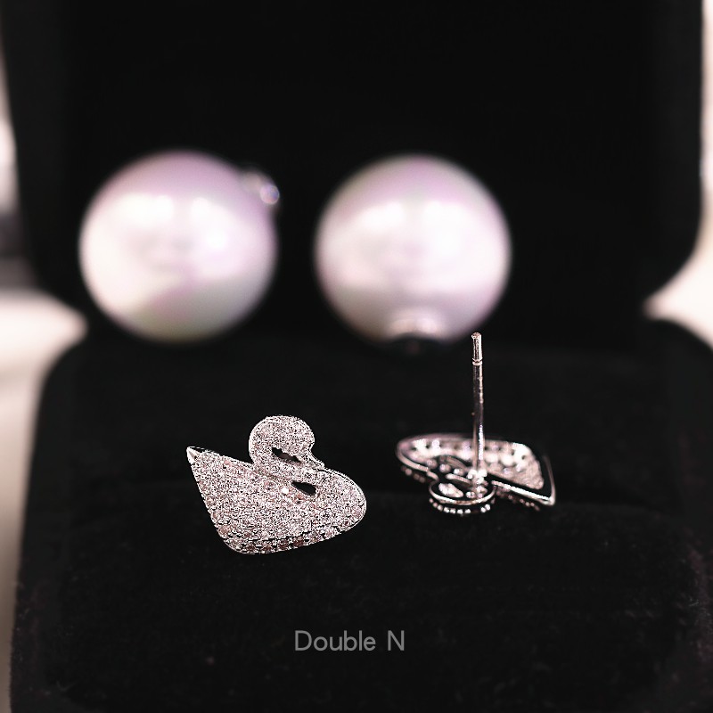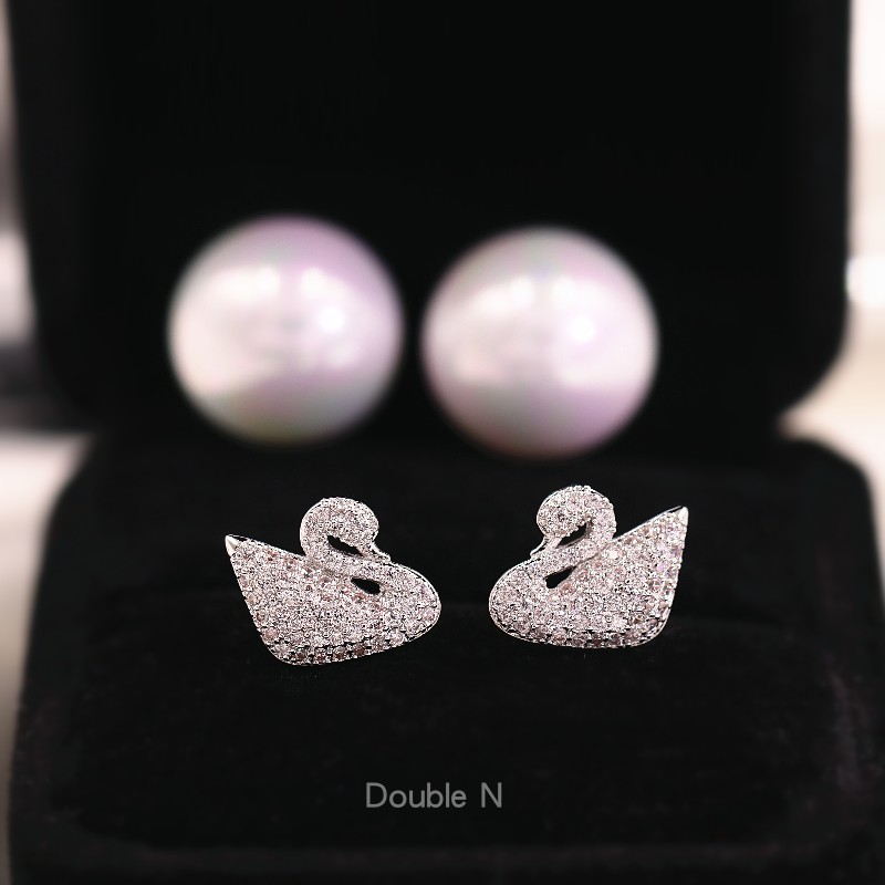 双面大气天鹅珍珠耳钉明星同款耳环女高级感925纯银针防过敏耳饰