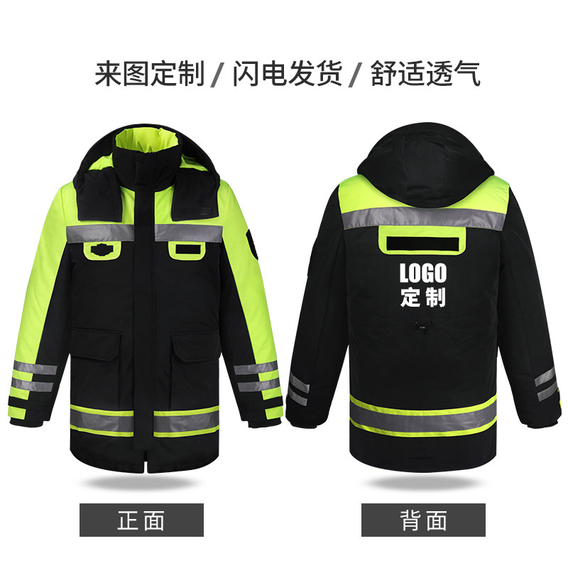 反光羽绒服棉衣冬季工作服交通安全服防水加厚3M户外防寒保暖大衣