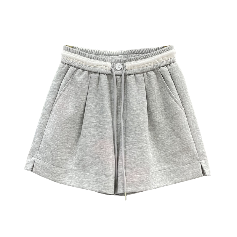 灰色运动短裤女2025夏季新款高腰抽绳显瘦开叉A字阔腿裤休闲热裤