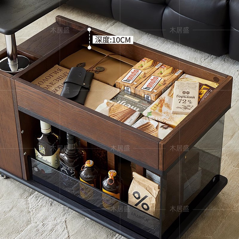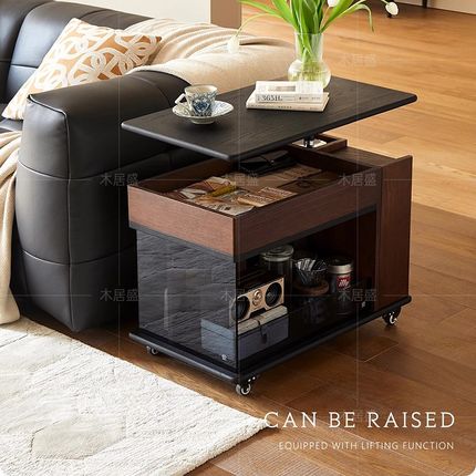 法式复古风可移动茶几客厅升降边几沙发户型红橡木折叠实木小推车