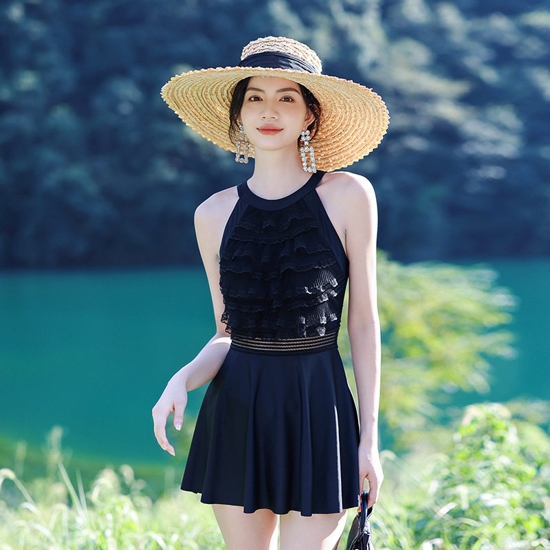 温泉泳衣女高级感2025新款连体小个子白色仙气度假绝美泳装女保守