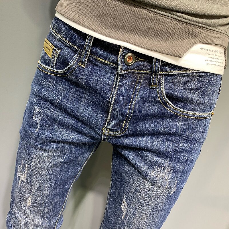 夏季男士牛仔裤潮牌高端修身裤子