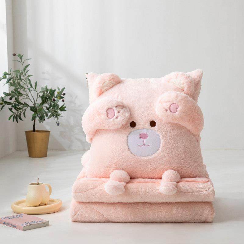 加厚兔毛绒卡通抱枕被子两用汽车沙发午睡靠垫枕头被子二合一