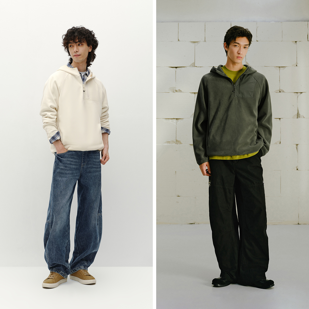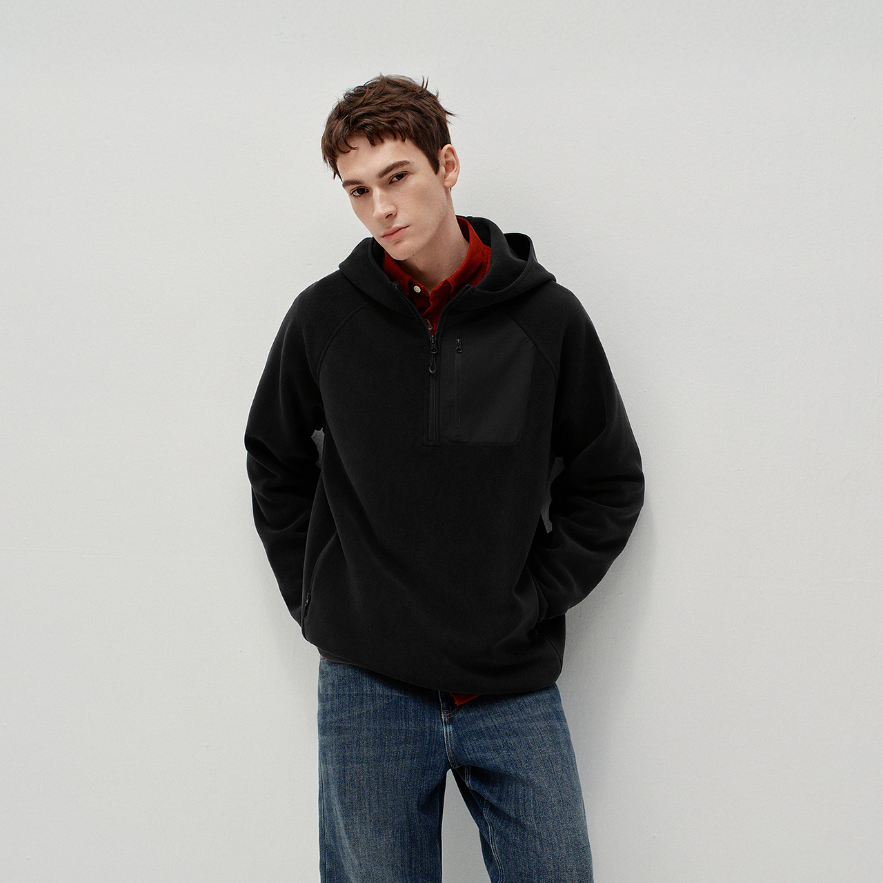 商场同款|森马卫衣男冬季抗静电摇粒绒2025新款户外拼接连帽上衣