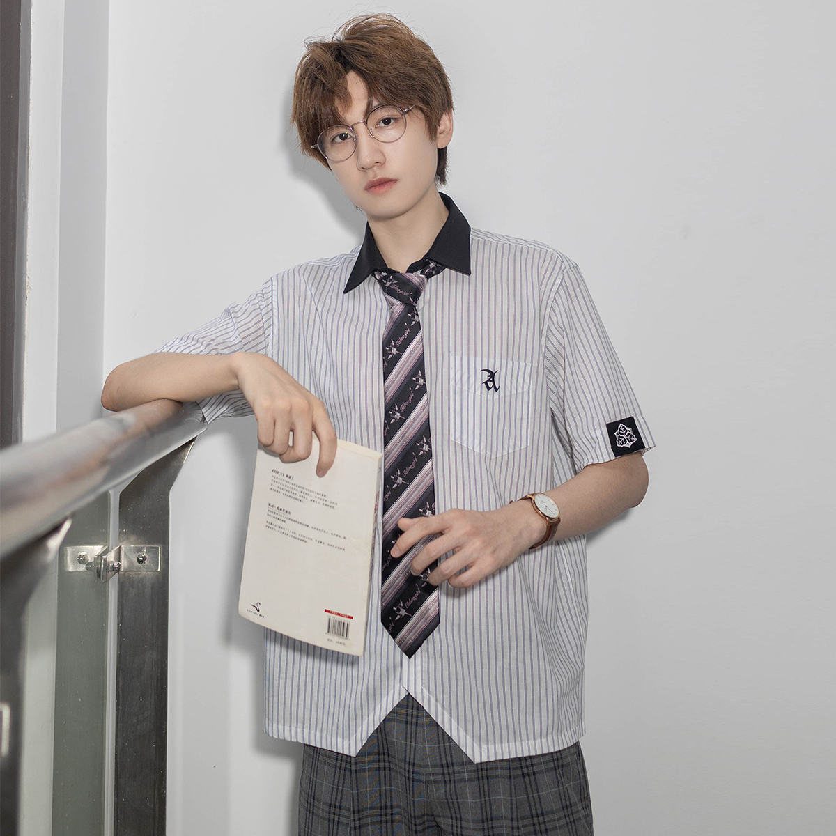 放学后的制服馆/斑特高校/dk男款短袖条纹衬衫学院风轻薄透气上衣