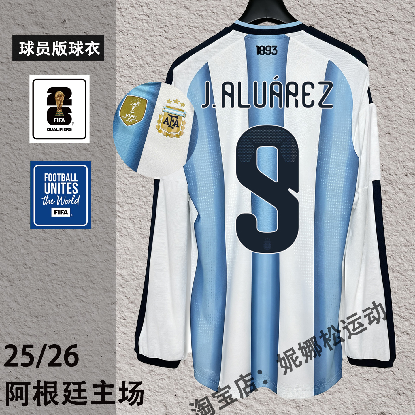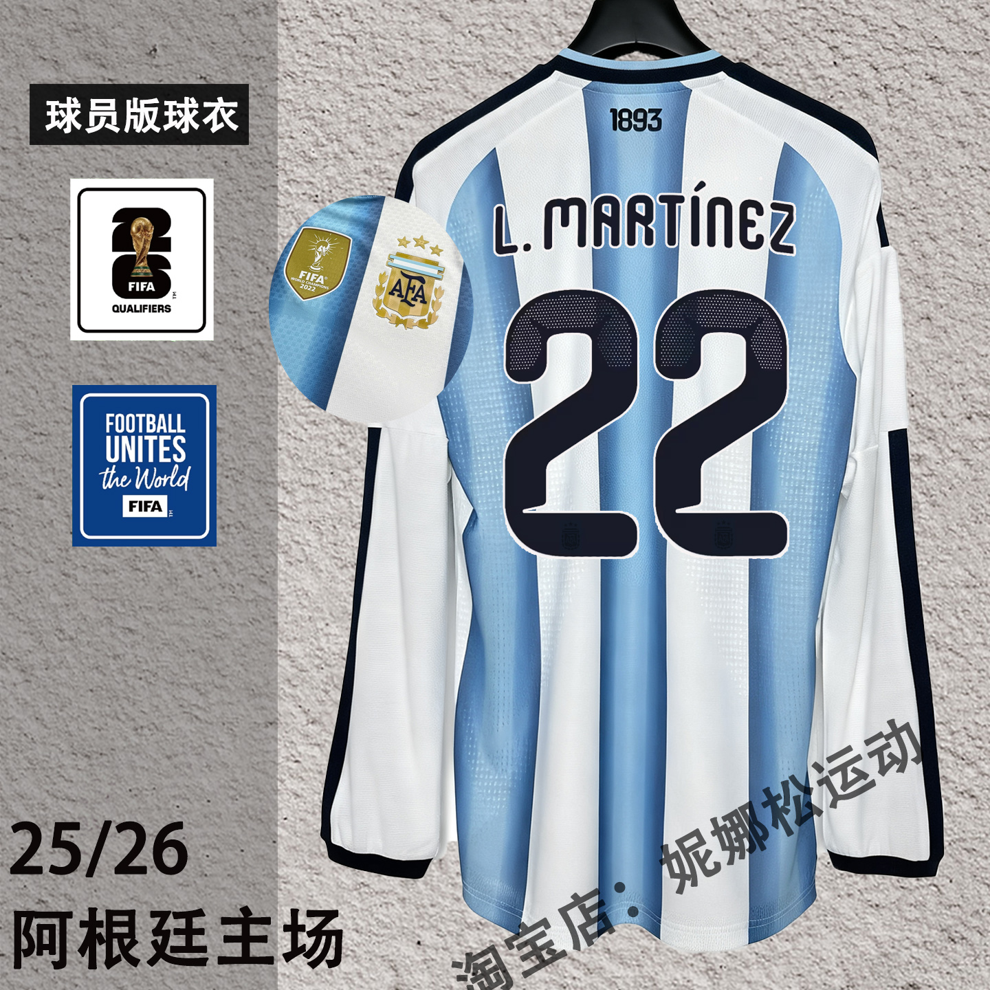 球员版2026阿根廷主场长袖球衣10号梅西22号劳塔罗足球服印制队服