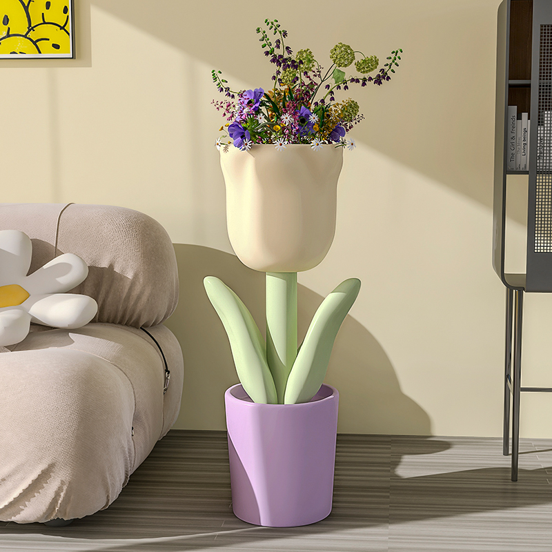 初晨初梦郁金香花瓶高级感客厅插花大型摆件仿真花落地网红大花盆