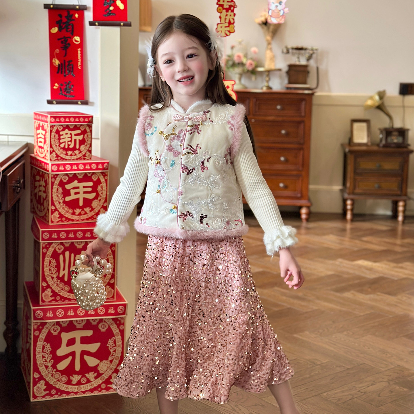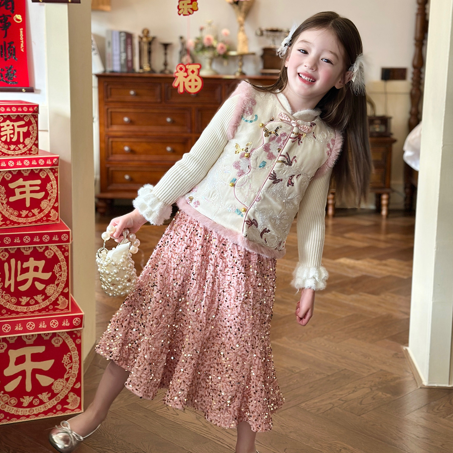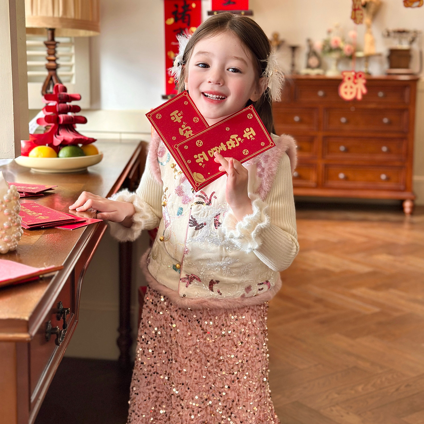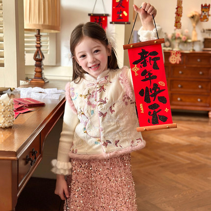 栀了成长记童装女童新中式唐装上衣2025冬季儿童国风丝绒夹棉马甲