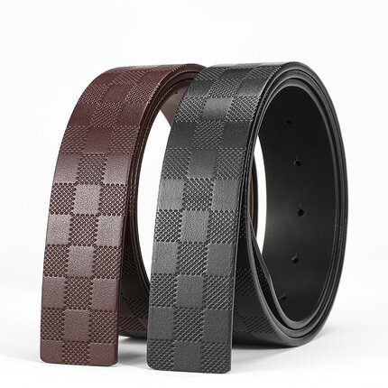 格纹皮带男士真皮无扣头不带头h腰带平滑扣带身头层牛皮裤带3.8cm