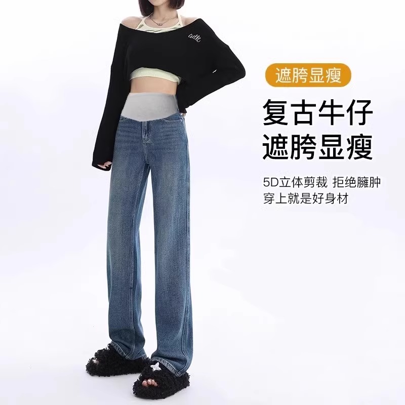 婧麒孕妇直筒牛仔裤不勒肚子裤子