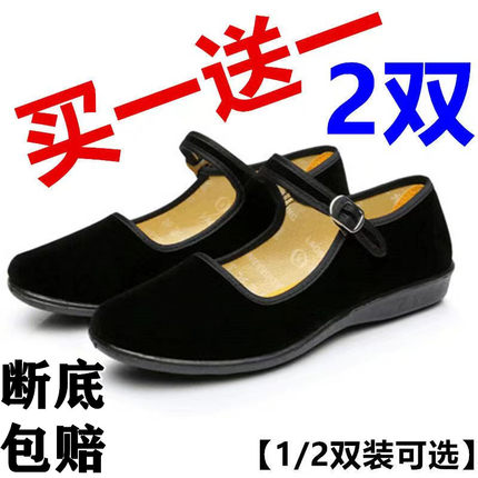 老北京布鞋工作单鞋女平底坡跟松糕一字带酒店上班礼仪舞蹈黑布鞋