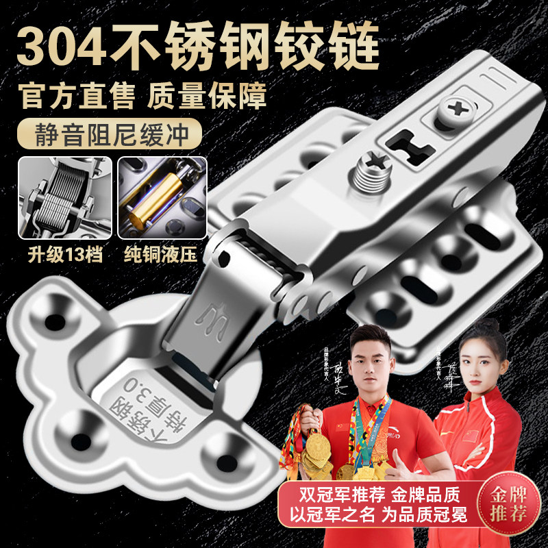 铰链304不锈钢衣柜飞机合叶中弯弹簧阻尼缓冲门铰牛头橱柜门合页