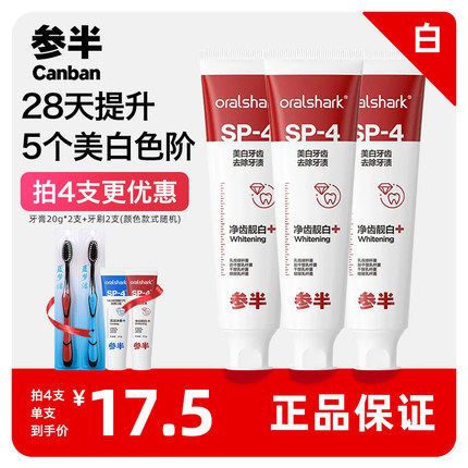 参半口腔鲨鱼牙膏益生菌sp4清新口气美白oralshark旗舰官方正品