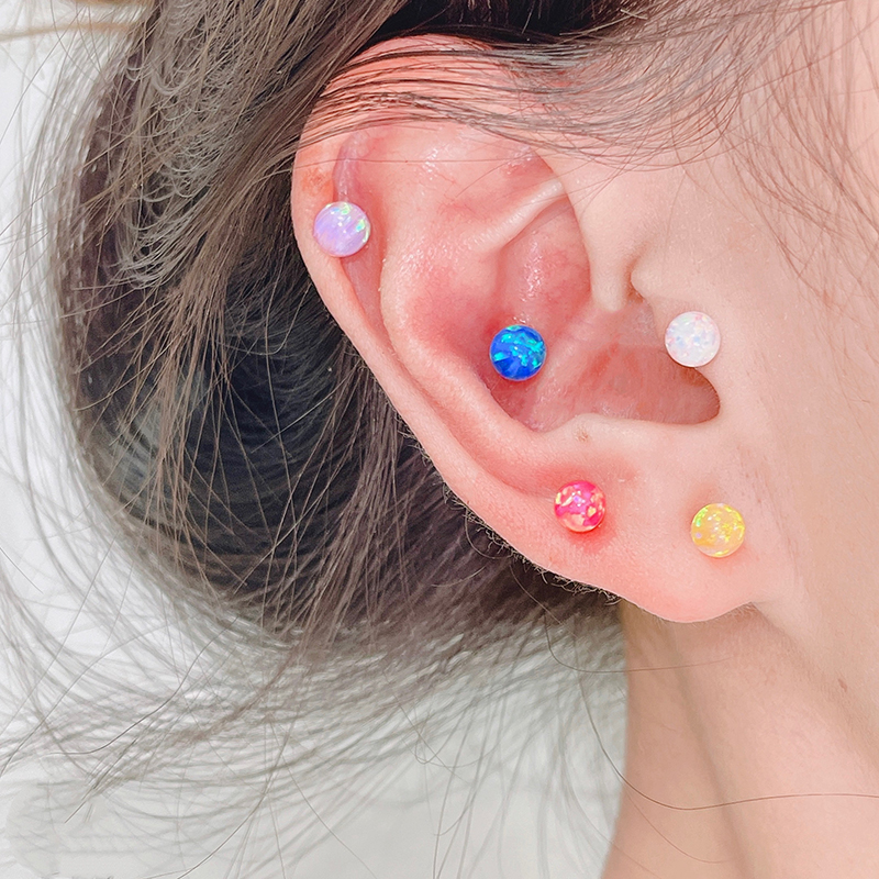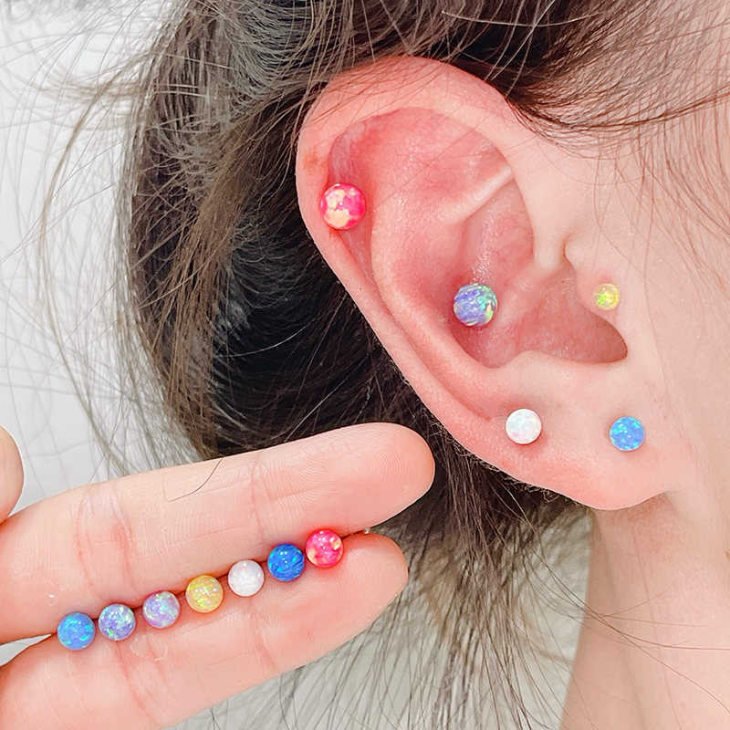 韩国唇钉钛钢细针迷你欧珀石澳宝拧螺丝耳骨钉彩色球欧泊耳钉豆豆