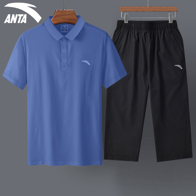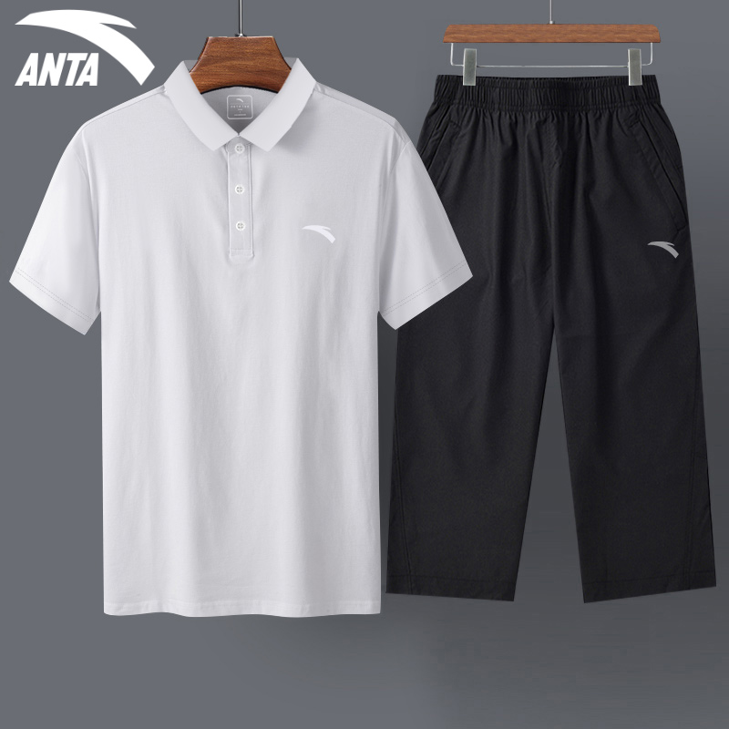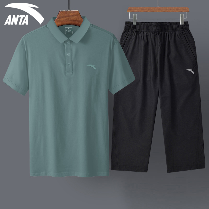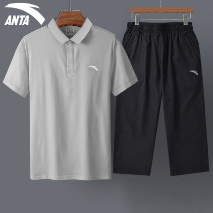 安踏运动套装男士短袖polo衫七分裤中老年夏季爸爸装父亲运动服T