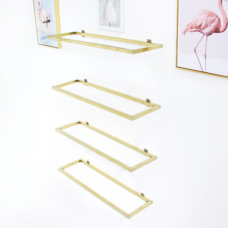 服装店鞋包展示架置物架不锈钢金色多层上墙壁挂式鞋架包包陈列架